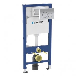 Geberit Alpha 1120mm Wall Hung WC Frame with Cistern and Alpha01 Chrome Round Flush Plate