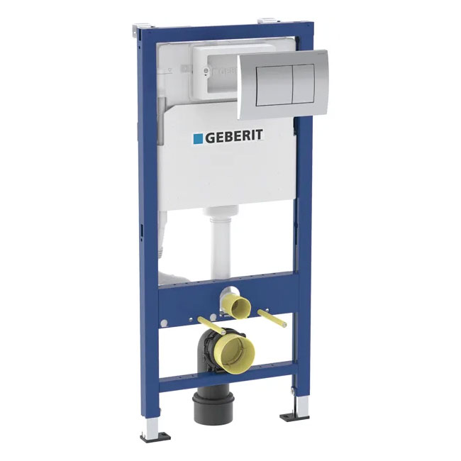 Geberit Alpha 1120mm Wall Hung WC Toilet Frame with Cistern and Alpha01 Chrome Square Flush Plate