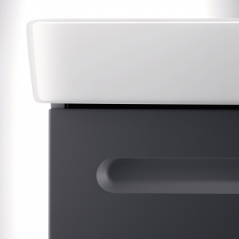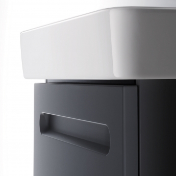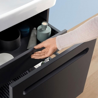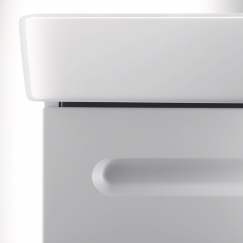 Duravit's No.1 collection features a seamless drawer front with integrated grip handle to give each unit a designer aesthetic. This vanity unit comes with a large ceramic basin - measuring 550mm wide x 460mm deep - complete with a thin rim and large tap shelf that can hold plenty of essential toiletries.