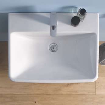 - Basin includes Duravit branding and overflow; 1 central tap hole