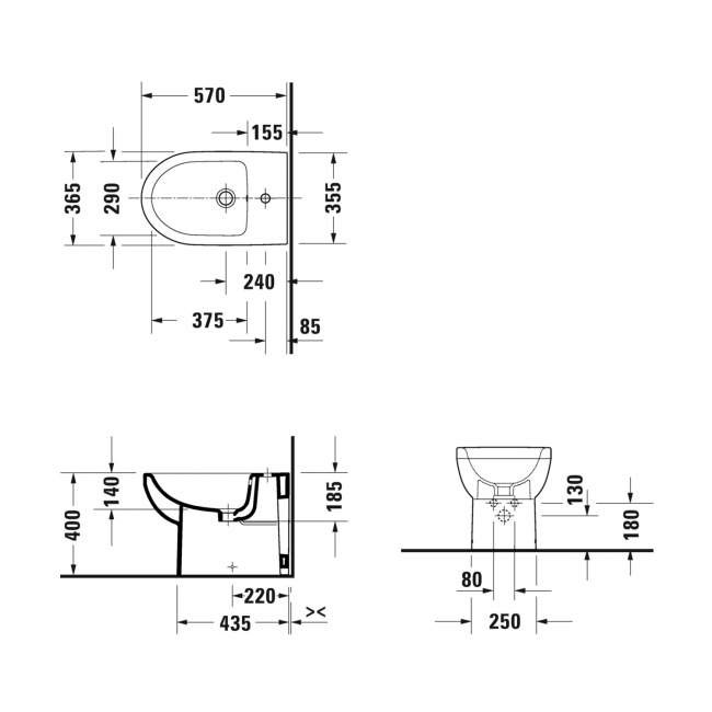 Duravit No.1 Floor Standing Bidet 570mm Projection - 1 Tap Hole Duravit No.1 Floor Standing Bidet 570mm Projection - 1 Tap Hole
