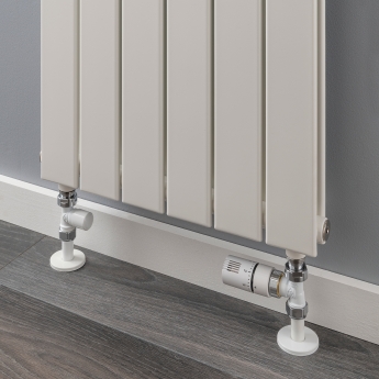The popular Lateral collection consists of 70mm flat vertical tubes that exude style through their strong lines and angles. The Lateral Slimline is an extension of that design, but with underneath connections rather than standard side connections. This is particularly useful when the width of the radiator spans most of the wall, and there is not enough room to accommodate the additional width required for side-mounted radiator valves. The Lateral Slimline radiator solves this by allowing the valves to be added beneath the radiator. Finished in RAL 9016 white as standard.
