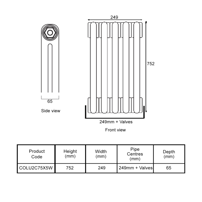 EcoRad Legacy Horizontal 2-Column Radiator - 750mm x 249mm (5 Sections)