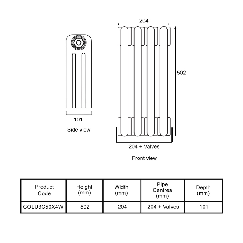EcoRad Legacy Horizontal 3-Column Radiator - 500mm x 204mm (4 Sections)