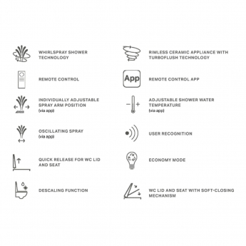 - Geberit Home App: Transforms your smartphone into a remote control for your AquaClean Alba, access advanced user functions that offer the capability to save personal settings including shower spray intensity, spray arm position, temperature control and many others