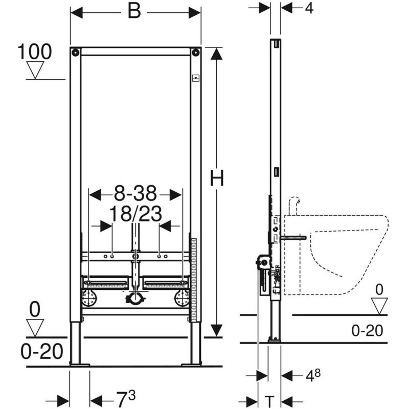 • Foot plate depth suitable for installation in U-profiles UW 50 and UW75 and Geberit Duofix system rails