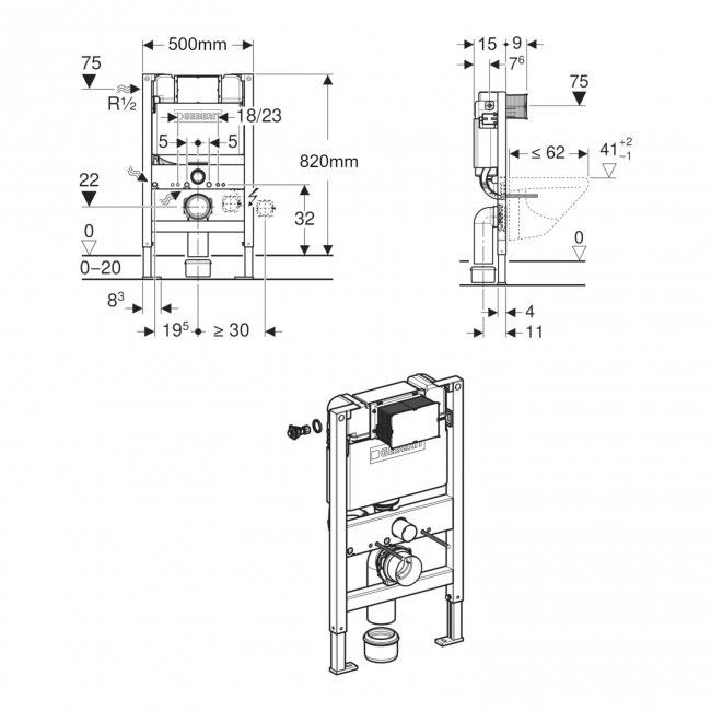 Geberit Duofix Wall Hung Toilet Frame with Kappa Concealed Cistern 500mm W x 820mm H | Thumbnail Image Geberit Duofix Wall Hung Toilet Frame with Kappa Concealed Cistern 500mm W x 820mm H | Thumbnail Image Geberit Duofix Wall Hung Toilet Frame with Kappa Concealed Cistern 500mm W x 820mm H