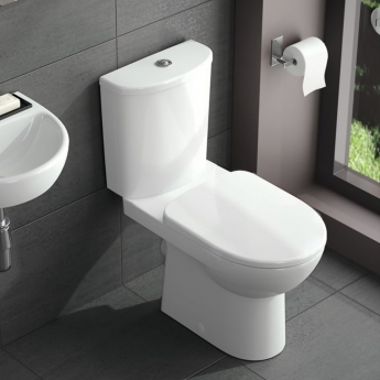 - Supplies with close coupled pan, dual flush cistern and Soft closing seat