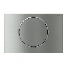This brushed stainless steel Sigma10 stop-and-go flush plate has a large, round button with an elegant polished design ring. Due to its robust stainless steel contruction it is perfect for high use, shared bathrooms, public spaces or care facilities.