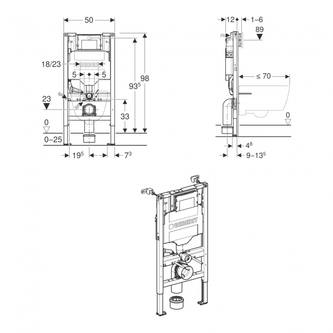 At 98cm high this Geberit frame is perfect for under window installations or for part-height installations in drywall construction