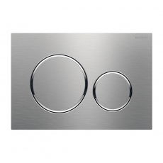 Made from robust stainless steel, the two round buttons with elegant polished design rings set in a brushed stainless steel surface with an easy-to-clean coating give this Sigma20 flush plate a contemporary look. This plate works well aesthetically with the curves of a round pan and soften the overall look of the bathroom and works well in high use areas due to the materials used.