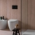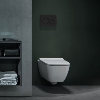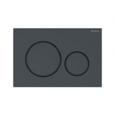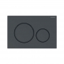 Two round buttons with elegant black design rings set in a matt black surface give this Sigma20 flush plate a contemporary look. This plate works well aesthetically with the curves of a round pan and soften the overall look of the bathroom.
