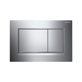 Two dual flush geometric square buttons with elegant matt chrome design stripes set in a gloss chrome surface give this Sigma30 a striking modern look. These plates work well aesthetically with a contemporary square shaped toilet pan providing a point of difference in the bathroom.