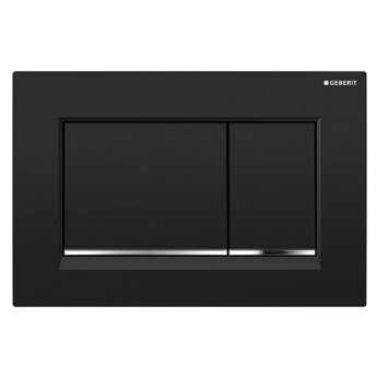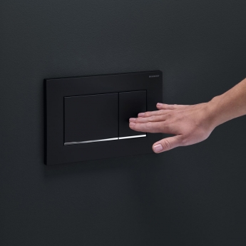 Two dual flush geometric square buttons with elegant gloss chrome design stripes set in a matt black easy-to-clean coated surface give this Sigma30 a striking modern look.