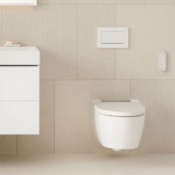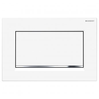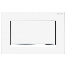 One geometric rectangular stop-and-go flush button with an elegant, polished design stripe set in a matt white easy-to-clean coated surface give Sigma30 a striking modern look.
