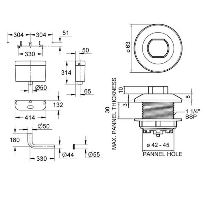 - Air button with 750mm air hose, for panel thickness up to 30mm