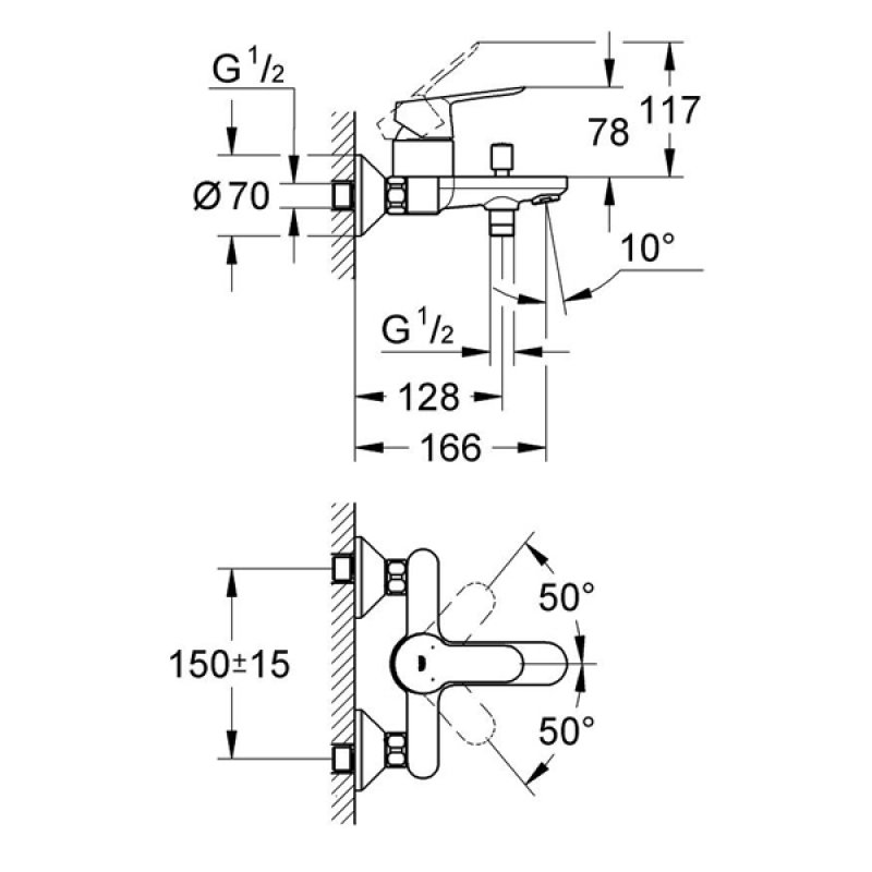 Grohe BauEdge Single Lever Bath Shower Mixer Tap - Chrome | Thumbnail Image Grohe BauEdge Single Lever Bath Shower Mixer Tap - Chrome