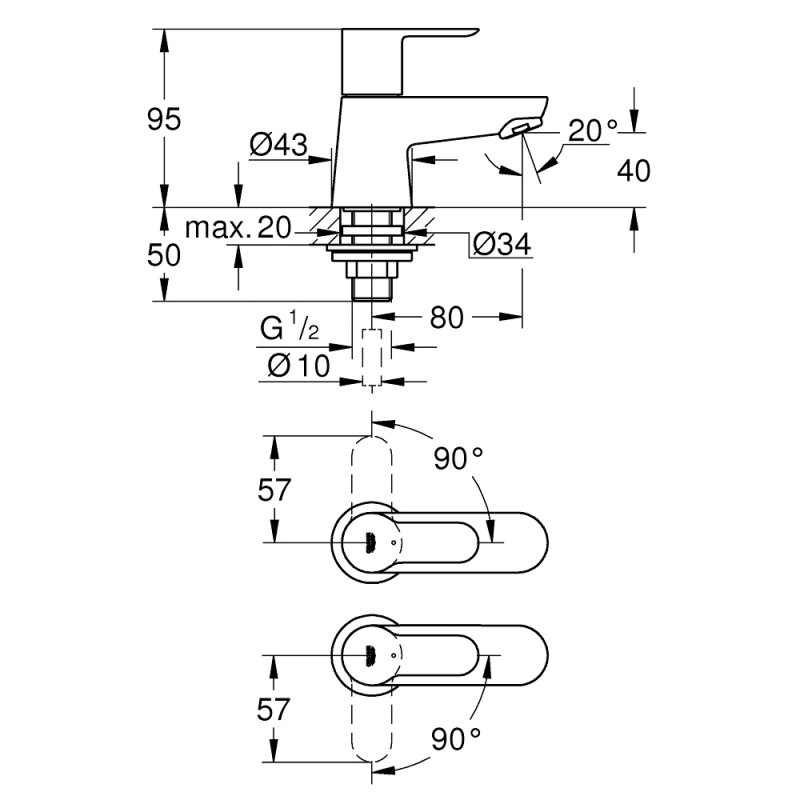 Grohe Bauedge Pillar Mounted Basin Taps Pair - Chrome