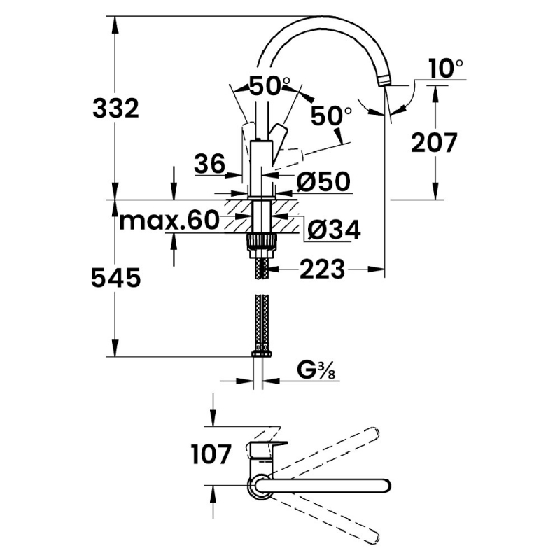 Tap Height332mm