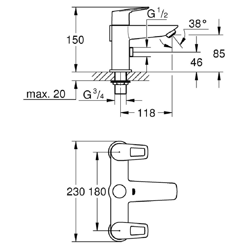 • Supplied with metal lever handle