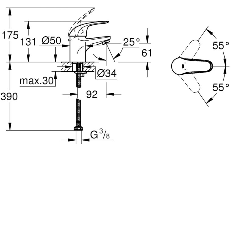 Grohe Euroeco Basin Mixer Tap - Chrome | Thumbnail Image Grohe Euroeco Basin Mixer Tap - Chrome