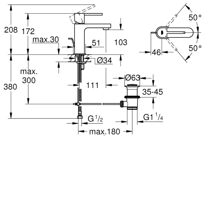 • Grohe silkmove 28 mm ceramic cartridge with temperature limiter