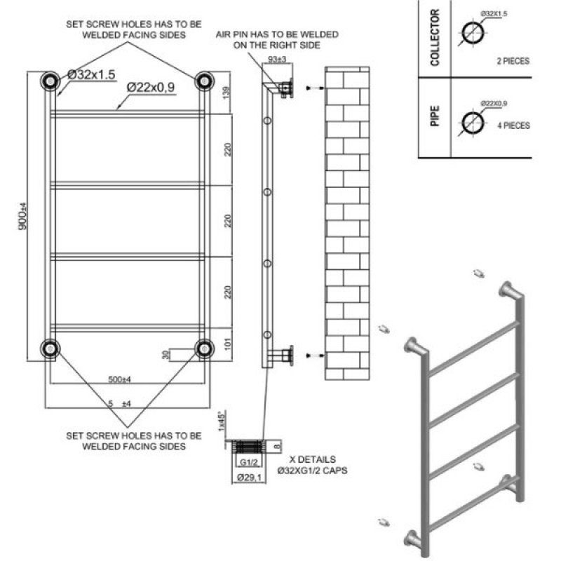 Reina Rance Dry Electric Designer Heated Towel Rail 455mm H x 500mm W Polished
