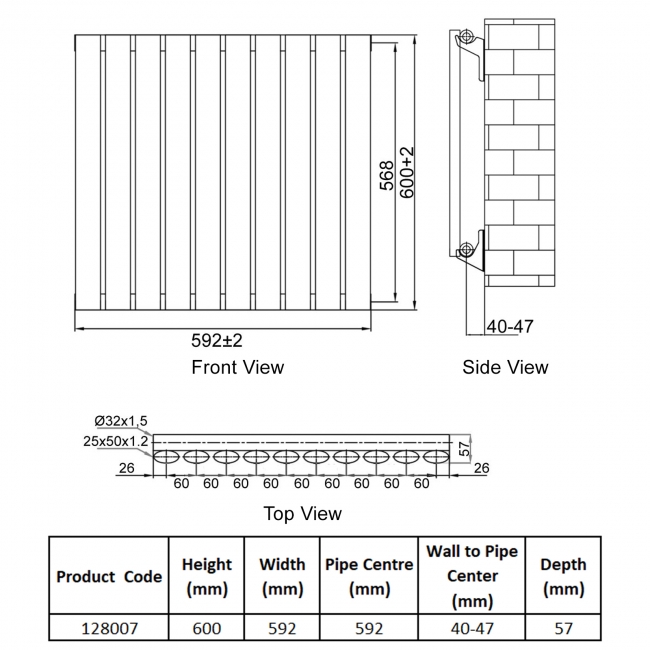 • Wall-mounted radiator - supplied complete with wall brackets and fixings