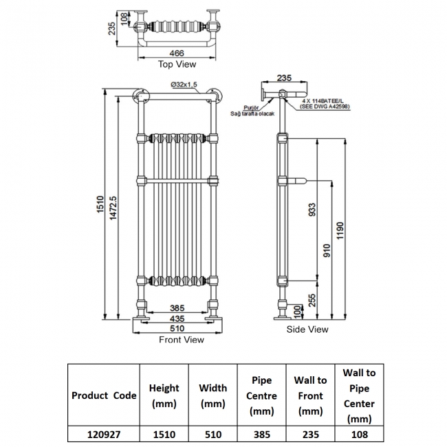 • We recommend pipework is not installed until receipt of radiator or heated towel rail