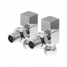 Heatwave Square Chrome Angled Radiator Valves Pair | Product Image Heatwave Square Chrome Angled Radiator Valves Pair