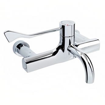 The HTM64 TBH2a Thermostatic Safe Touch Sequential mixer tap is designed specifically for use in hospitals, health care and commercial applications. The long sequential lever rotates through 180 and can be operated by the hand, wrist or elbow. Featuring Inta's Safe Touch technology the surface temperature is maintained below 42C even around the hot inlet. Compliance with NHS model engineering specification D08 is assured with TMV3 approval.