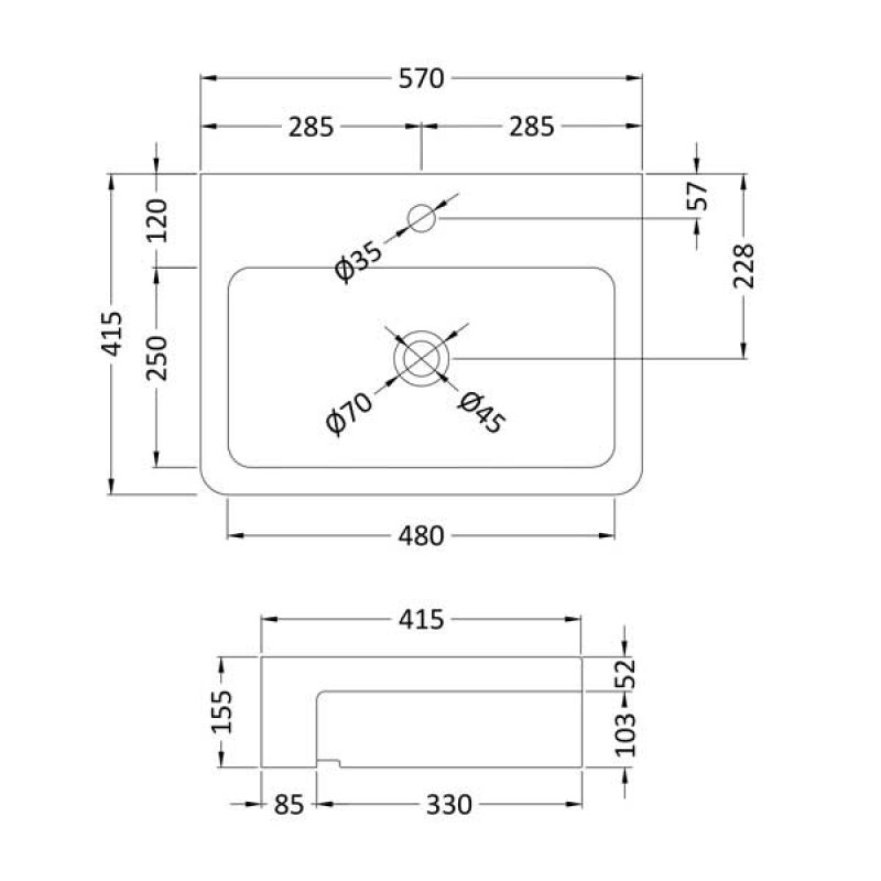 • Supplied with a pre-drilled single tap hole, suitable for a mono basin mixer