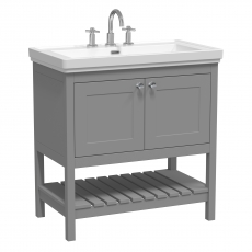 Hudson Reed Bexley 800mm 1-Drawer Floor Standing Vanity Unit - Cool Grey - Fireclay - 3 Tap Hole