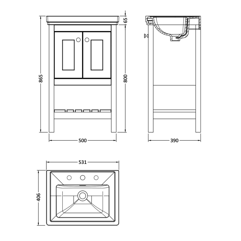 - Includes 3 tap hole premium fireclay basin featuring deep 65mm profile