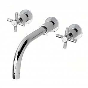 Hudson Reed White Topaz Wall Mounted Crosshead 3-Hole Basin Mixer Tap - Chrome