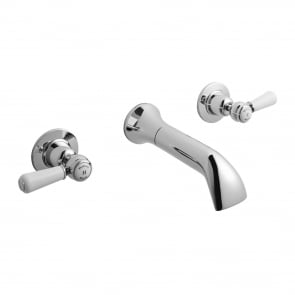 Hudson Reed White Topaz Wall Mounted Lever 3-Hole Basin Mixer Tap - Chrome