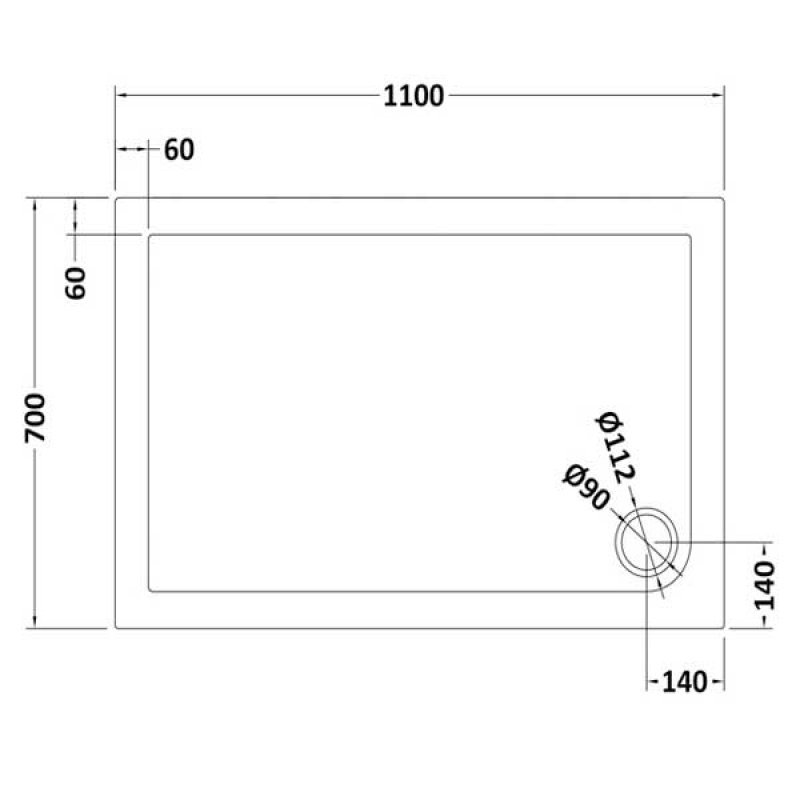 • Textured slate effect rectangular shower tray measuring 1100mm x 700mm
