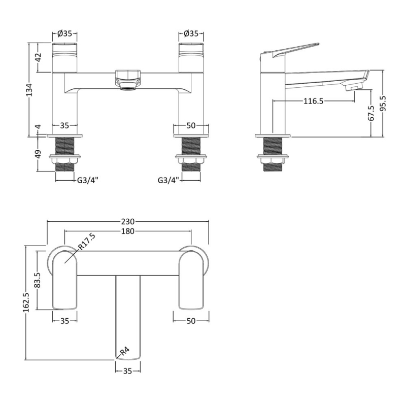 • Striking pillar mounted bath filler giving your bathroom a modern and stylish appearance