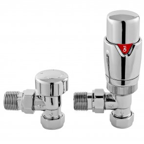 Hudson Reed Luxury Angled Thermostatic Radiator Valves Pair - Chrome