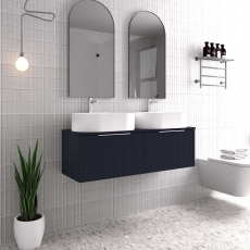 - Striking twin vanity unit with retro fluted cabinet design for added aesthetics