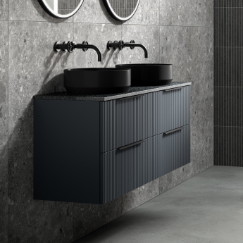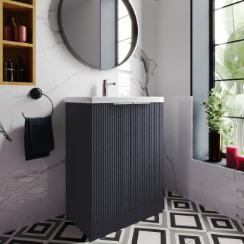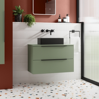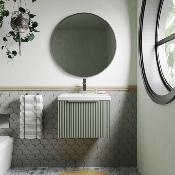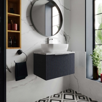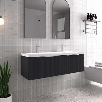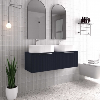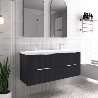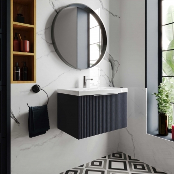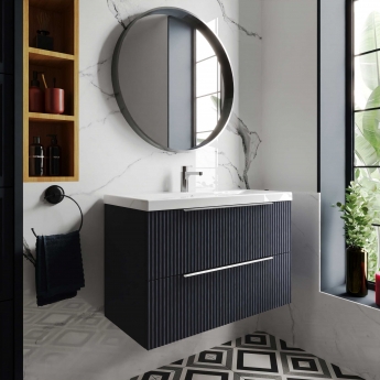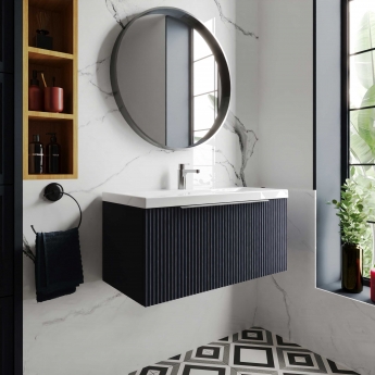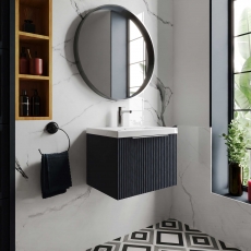 - Striking wall-hung vanity unit with retro fluted cabinet design for added aesthetics
