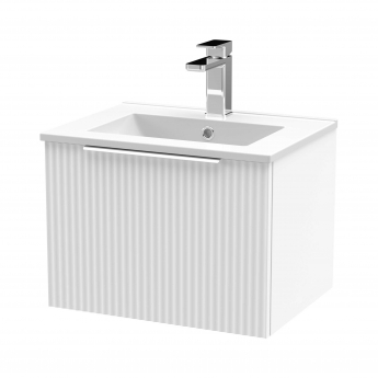Hudson Reed Fluted 500mm 1-Drawer Wall Hung Vanity Unit - Satin White - Minimalist
