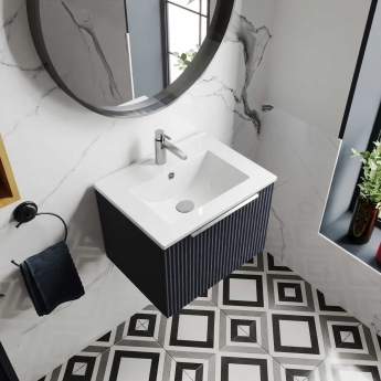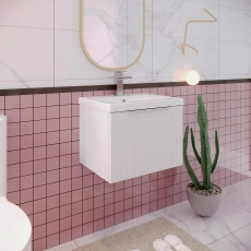 - Striking wall-hung vanity unit with retro fluted cabinet design for added aesthetics