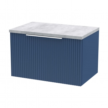Hudson Reed Fluted 600mm 1-Drawer Wall Hung Vanity Unit with Countertop - Satin Blue - Bellato Grey