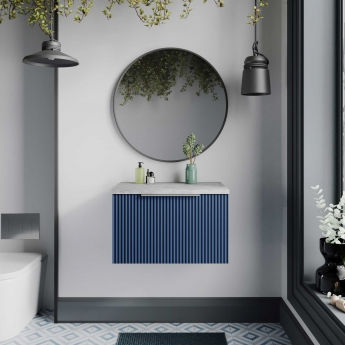 Hudson Reed Fluted Wall Hung 1-Drawer Vanity Unit with Bellato Grey Worktop 600mm Wide - Satin Blue