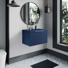 - Striking wall-hung vanity unit with retro fluted cabinet design for added aesthetics