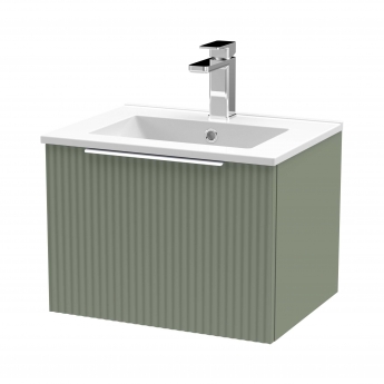 Hudson Reed Fluted Wall Hung 1-Drawer Vanity Unit with Basin 2 500mm Wide - Satin Green