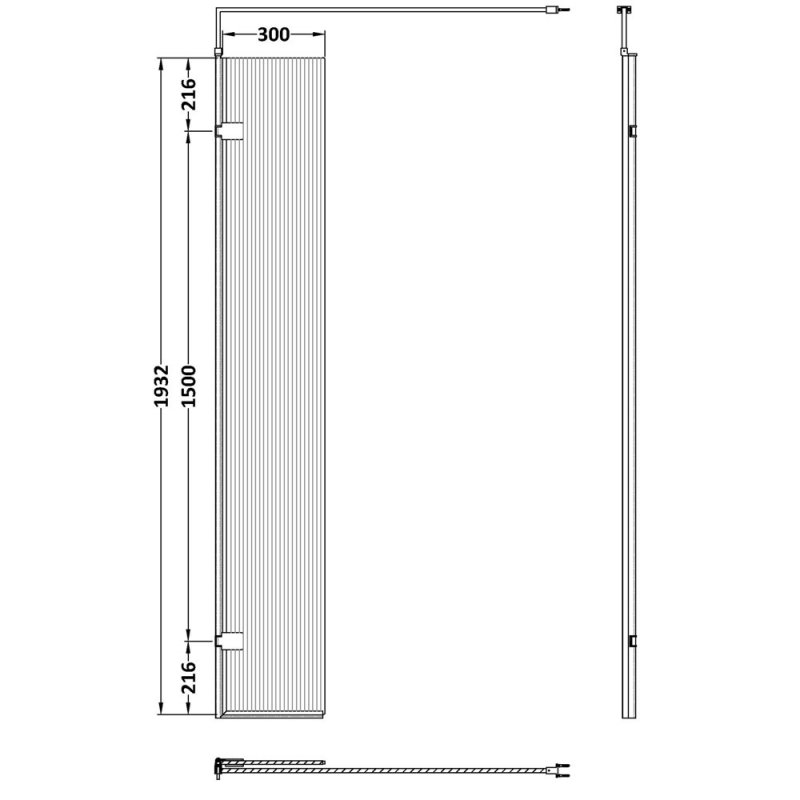 Hudson Reed Fluted Hinged Wet Room Return Panel 1950mm High x 300mm Wide with Support Bar - 8mm Glass | Product Image Hudson Reed Fluted Hinged Wet Room Return Panel 1950mm High x 300mm Wide with Support Bar - 8mm Glass