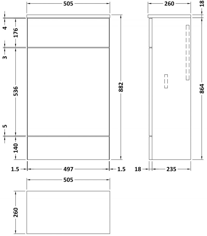 Furniture Width (Unit + Worktop)505mm