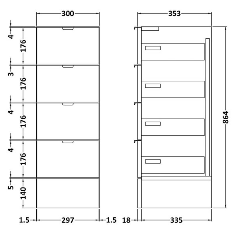 Hudson Reed Fusion Drawer Unit 300mm Wide - Gloss Grey | Thumbnail Image Hudson Reed Fusion Drawer Unit 300mm Wide - Gloss Grey